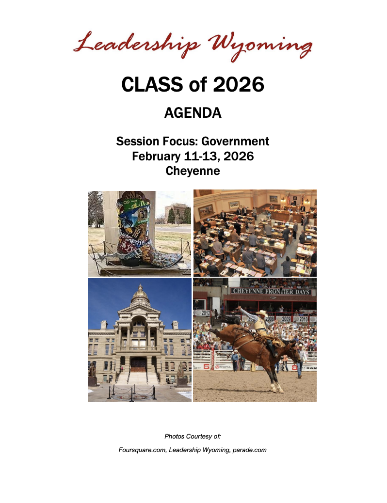 If you happen to be in Cheyenne for the first week of the Legislative Session, here is our Agenda. Stop by our classroom in the Capitol to say high on Wednesday, February 11th.